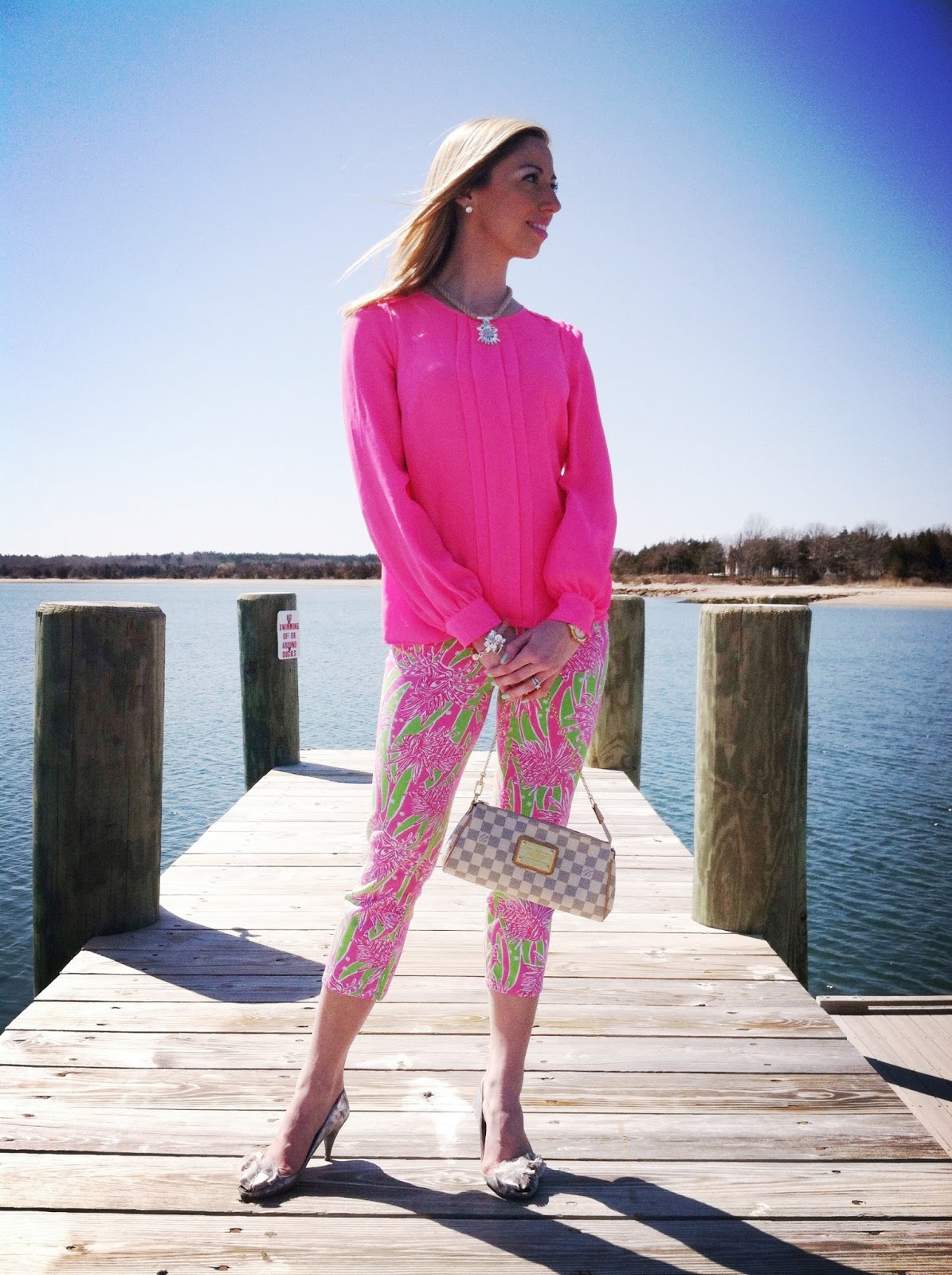 Outfit 1: Blouse J.Crew (similar), Pants Lilly Pulitzer (past season), Shoes J.Crew (past season), Purse Louis Vuitton, Watch Kate Spade, Necklace & Bracelet Haven